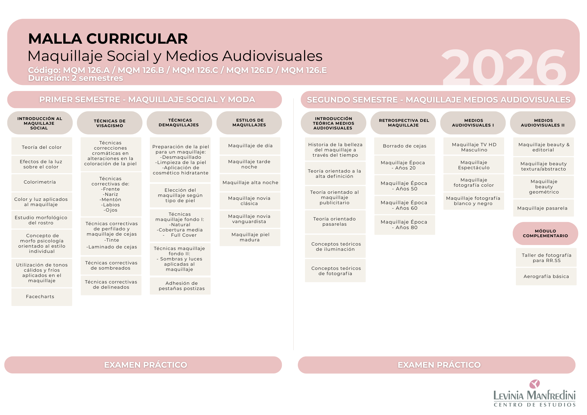 Los productos de maquillaje, materiales e insumos de uso personal para las clases prácticas deben ser aportados por los estudiantes, no están incluidos en el valor del curso.